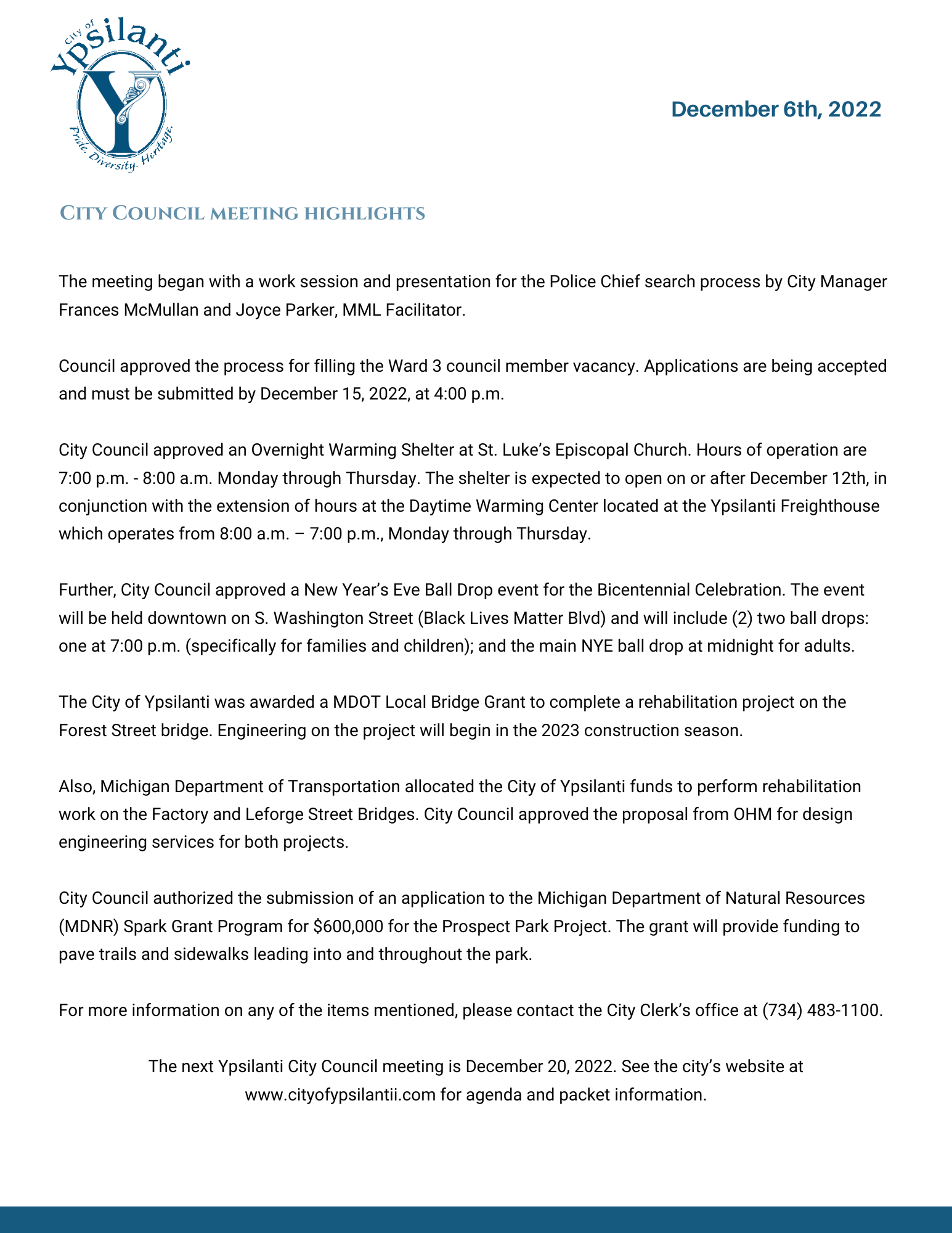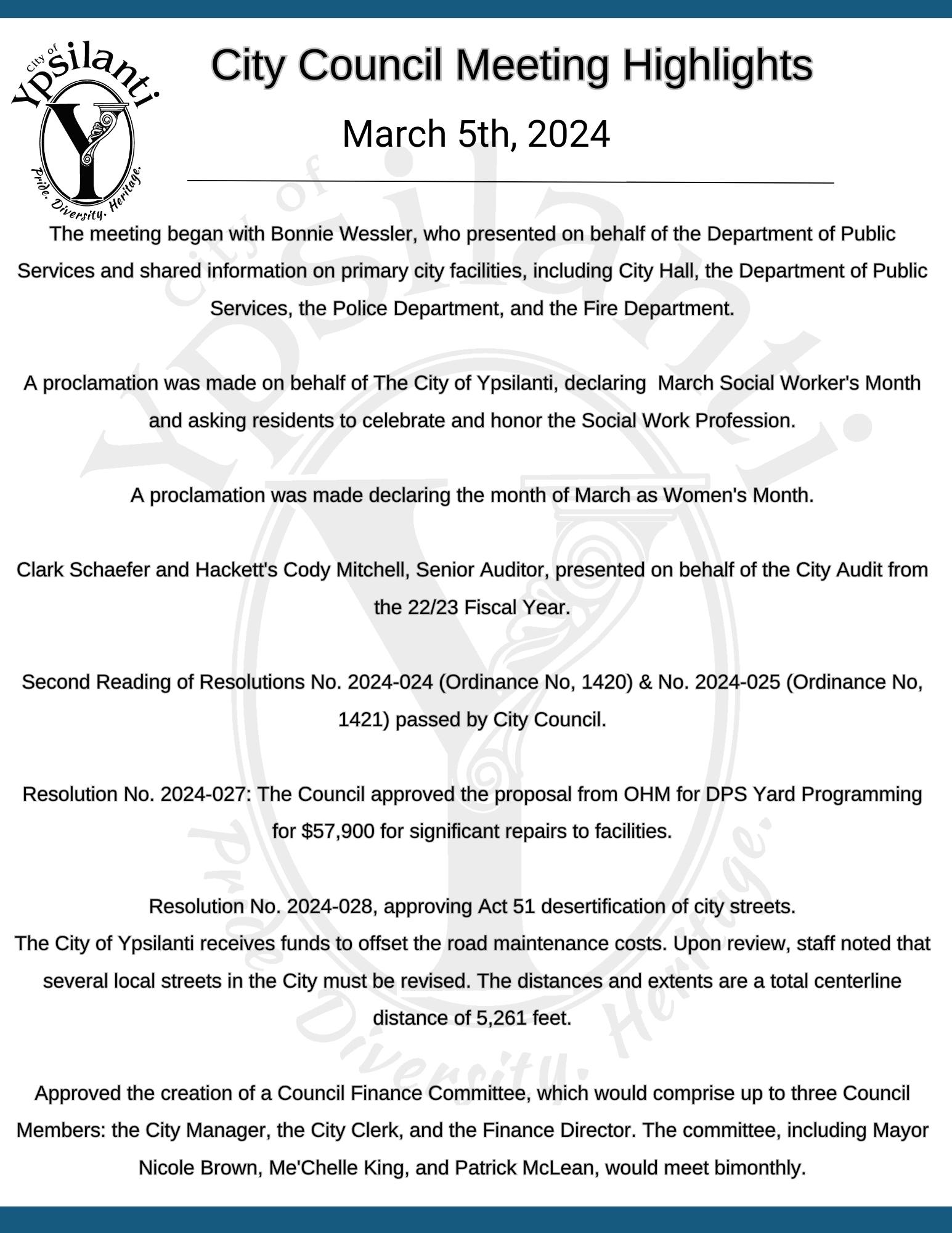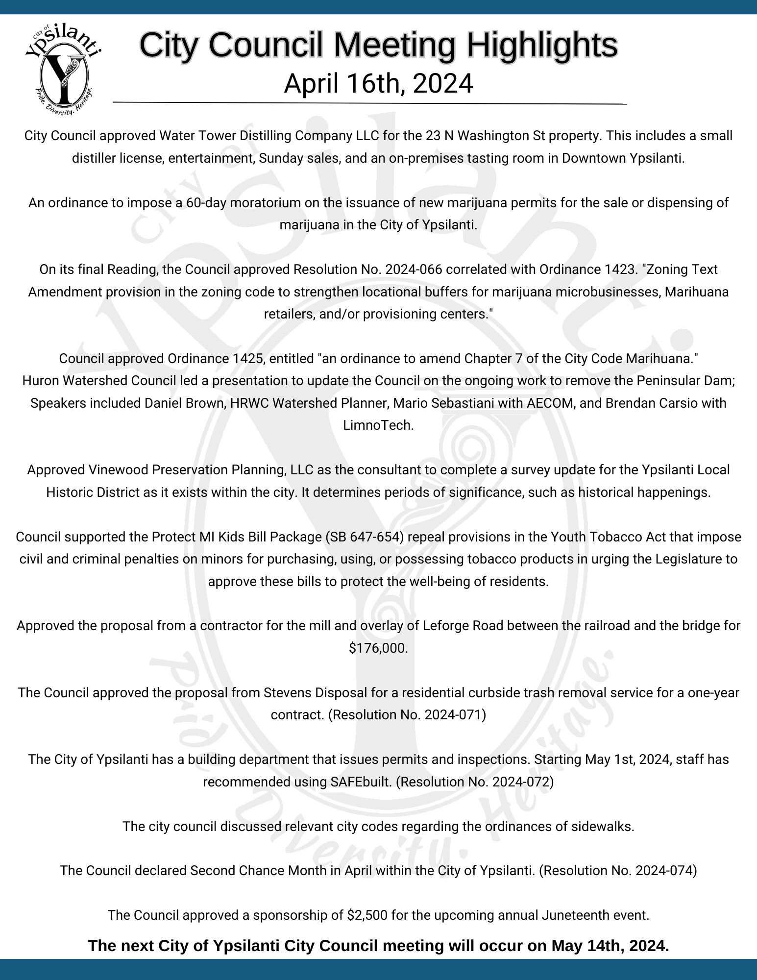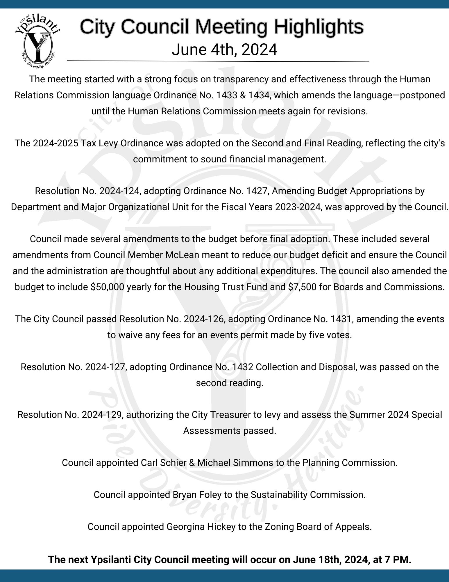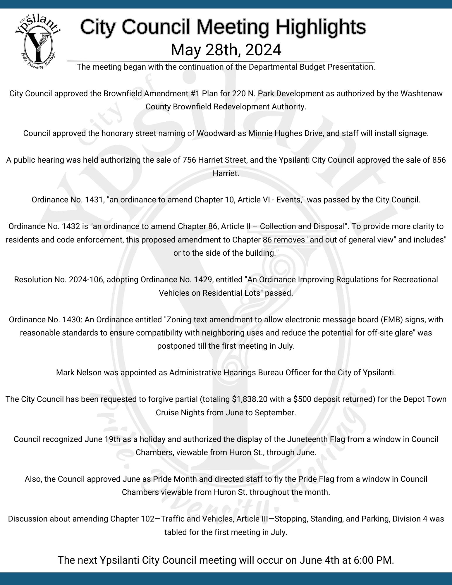 Meeting Highlights summarize what topics are covered at City Council Meetings