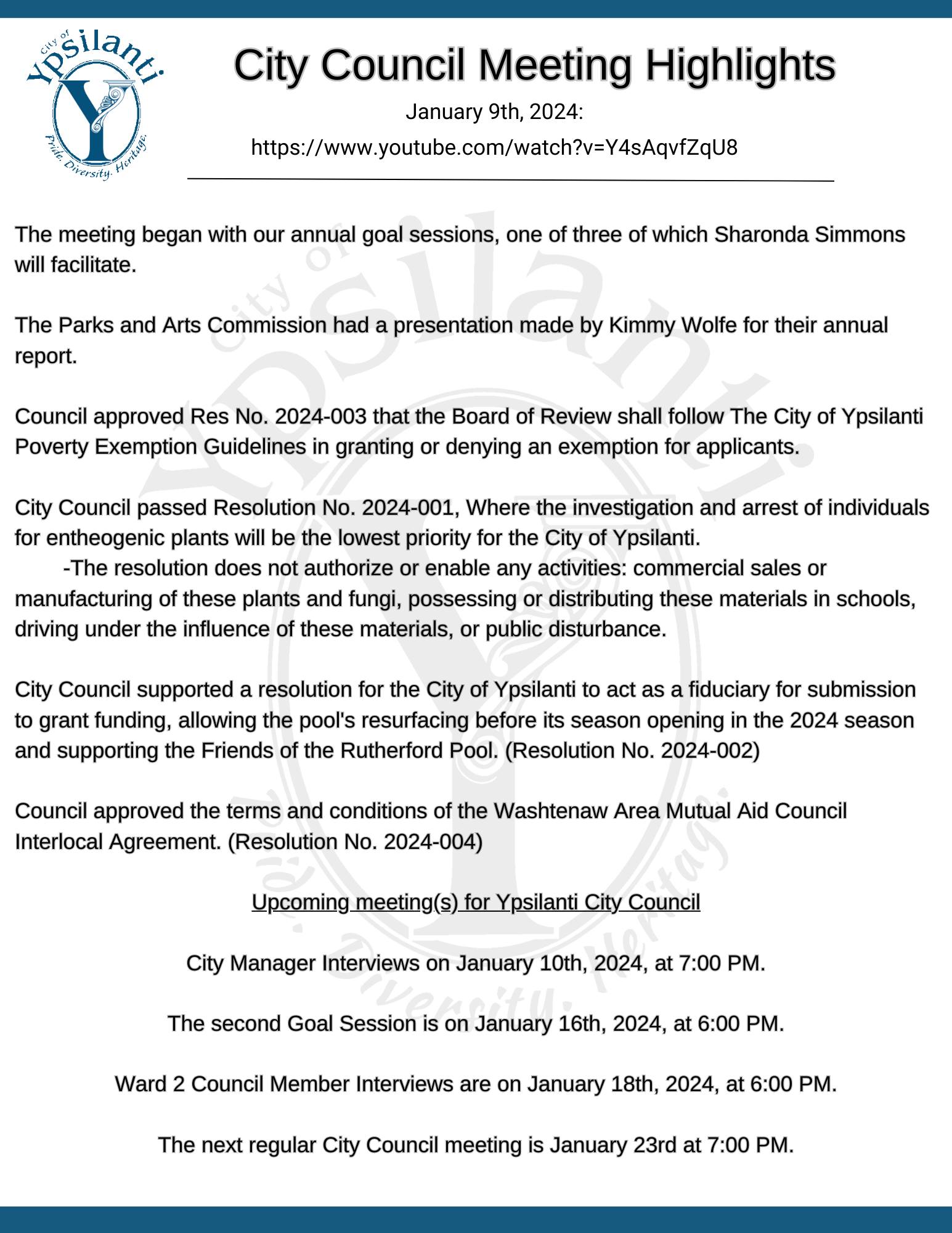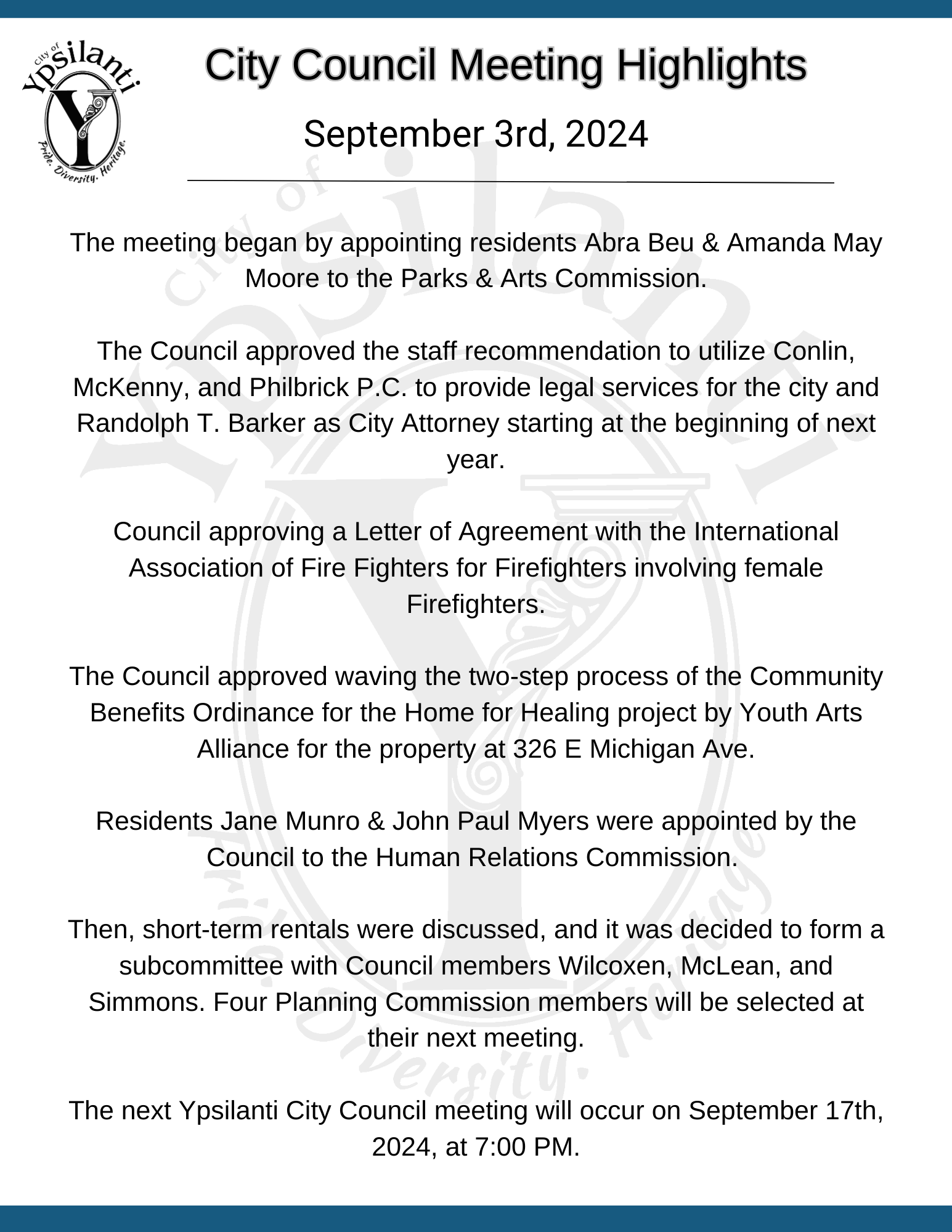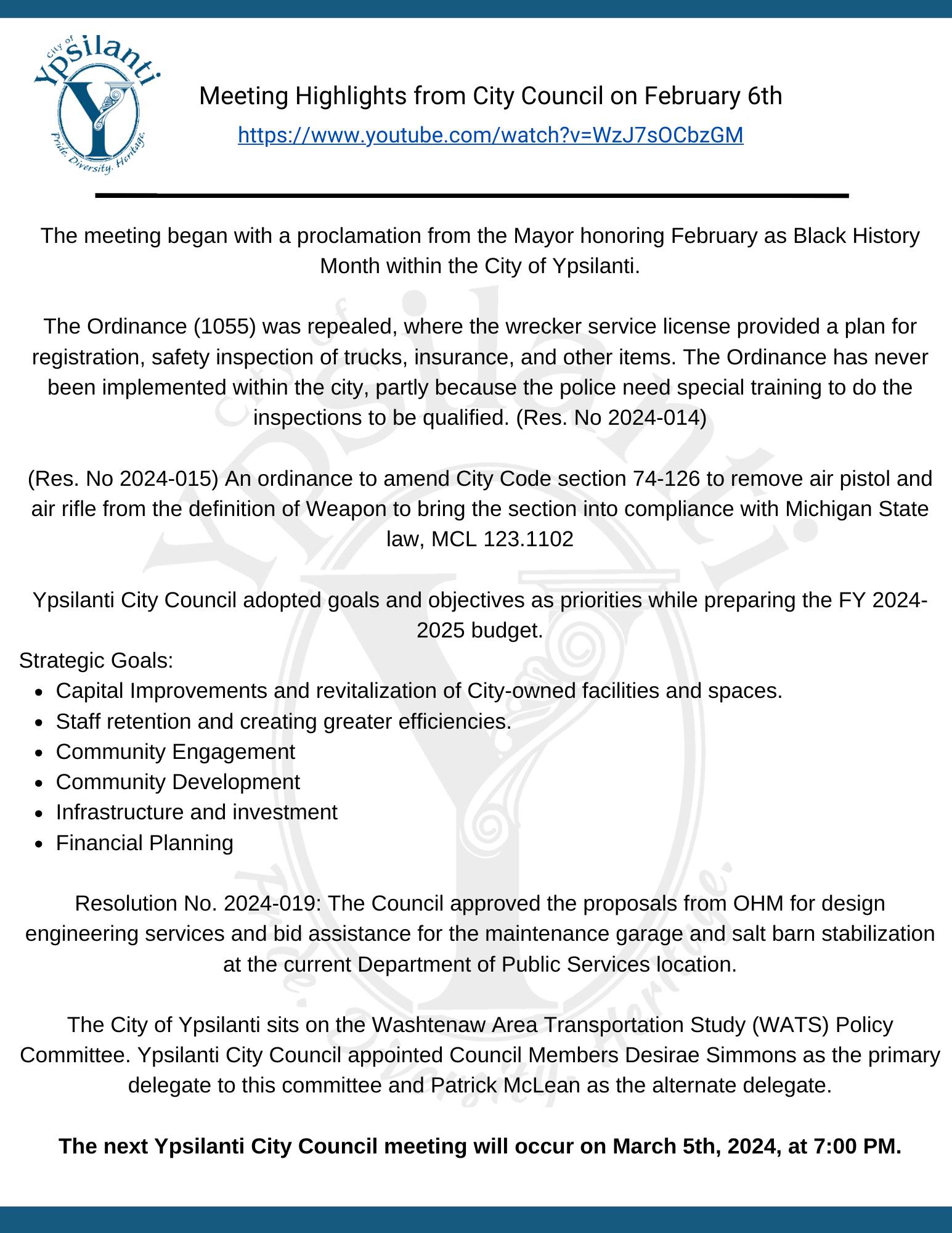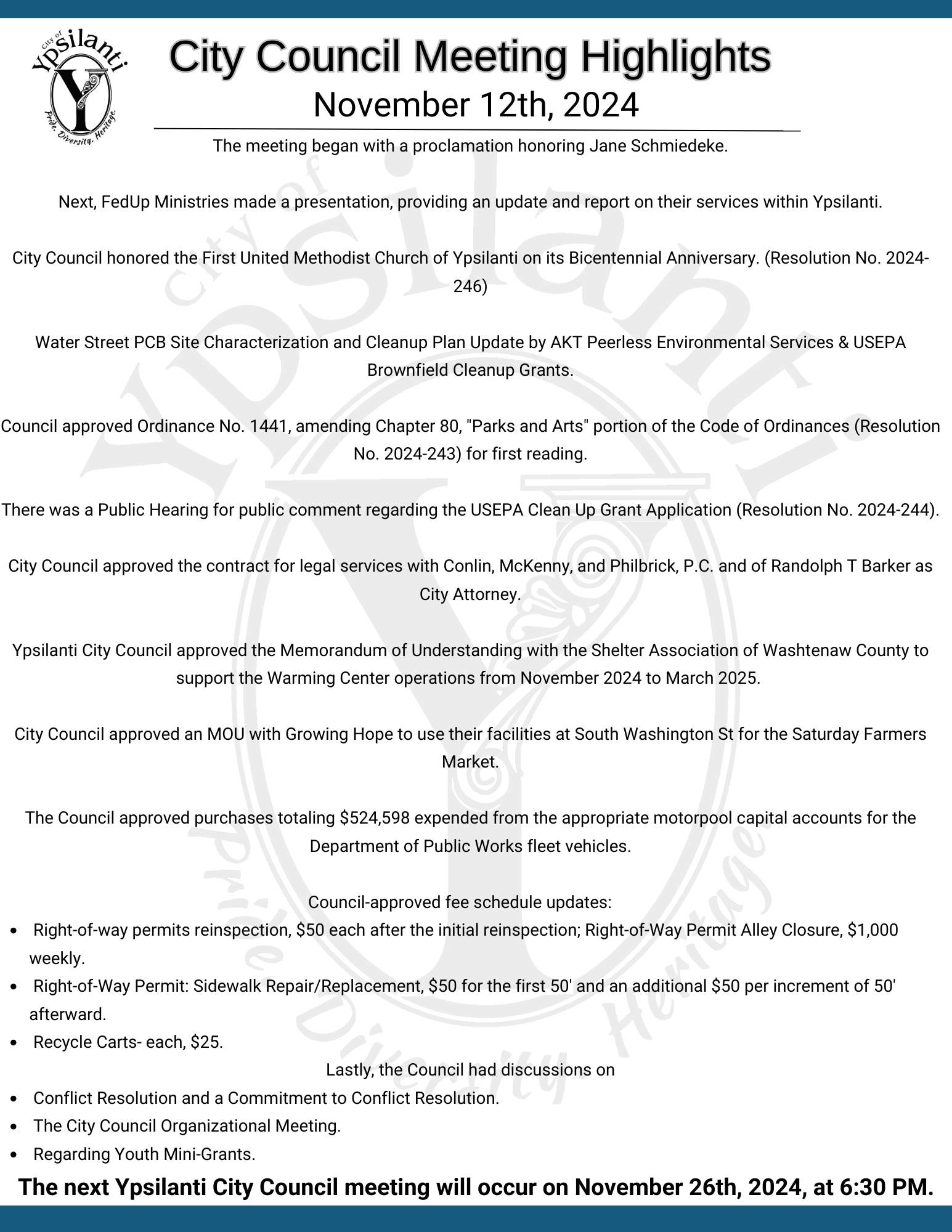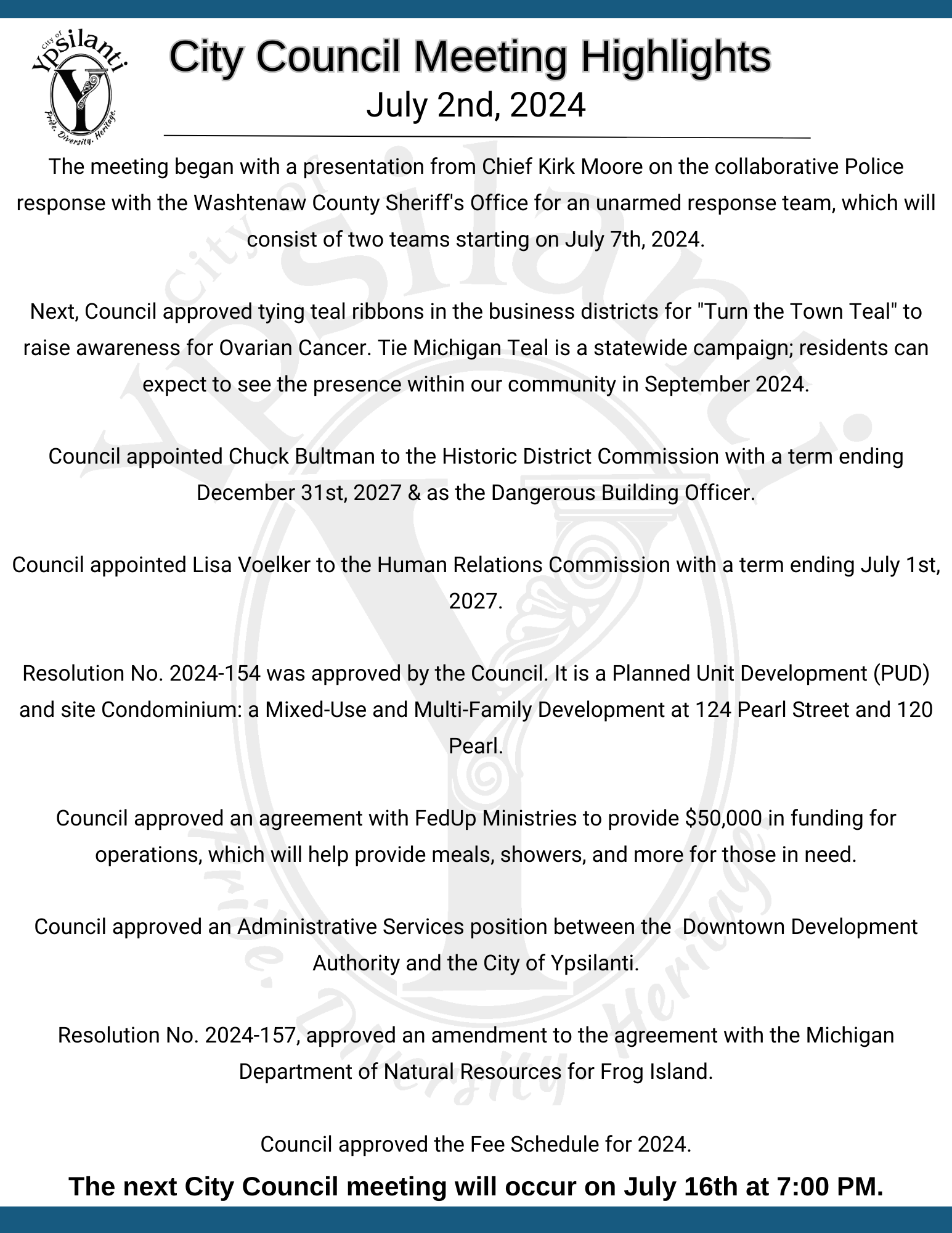 Meeting Highlights summarize what topics are covered at City Council Meetings