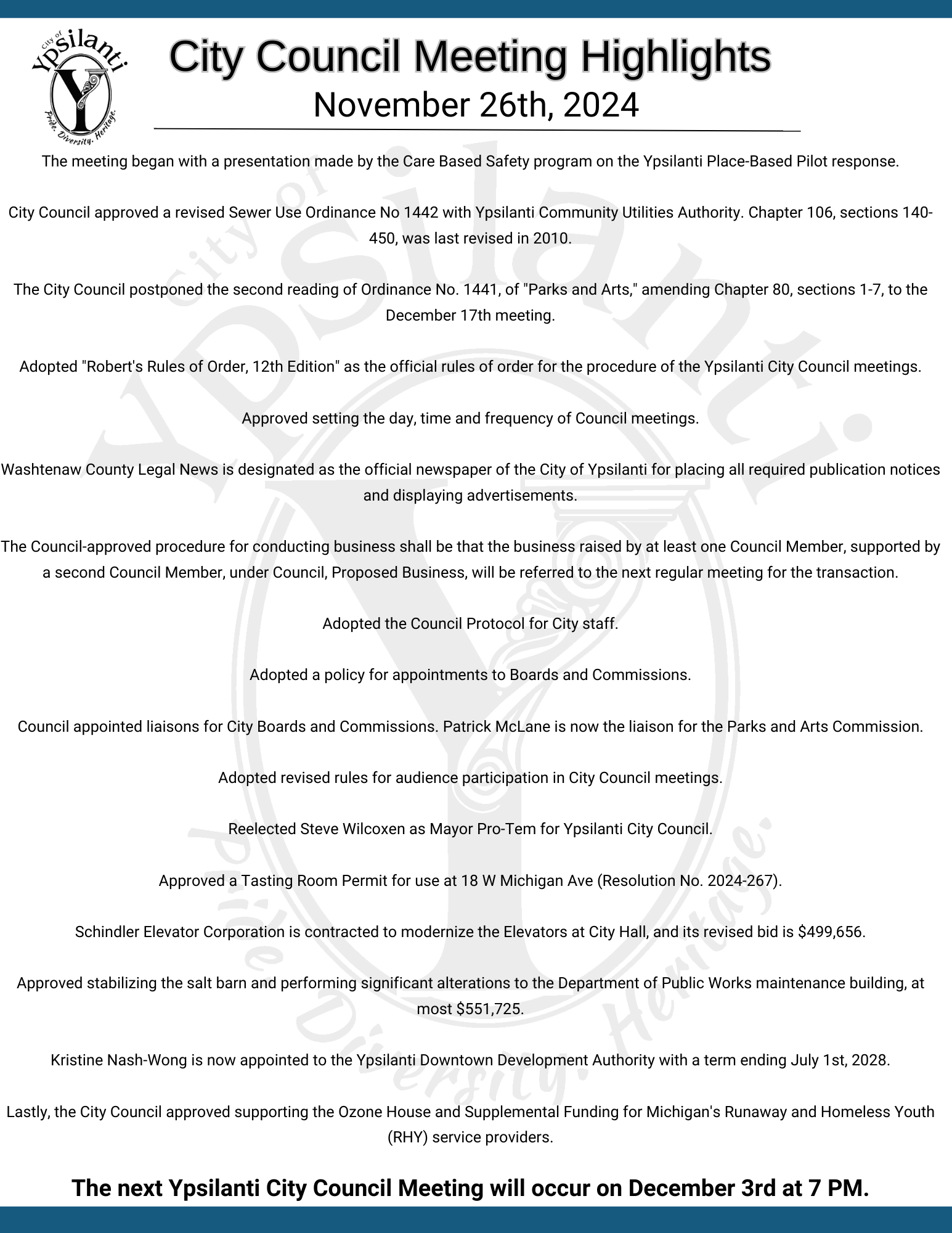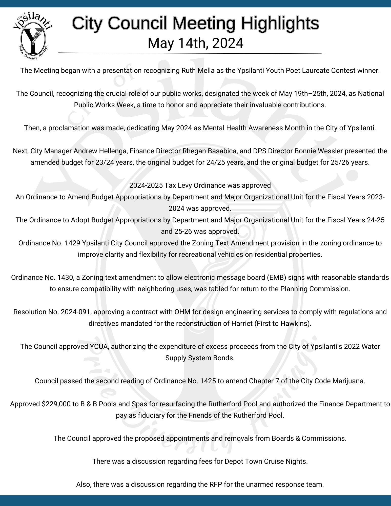 for a summary of what's covered in City Council meetings.